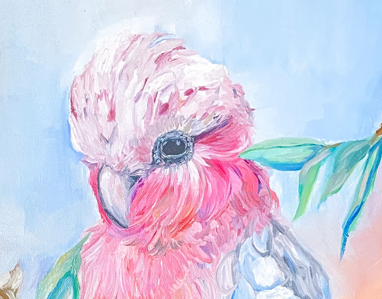 Pink Galah and Eucalpytus - Acrylic on Canvas